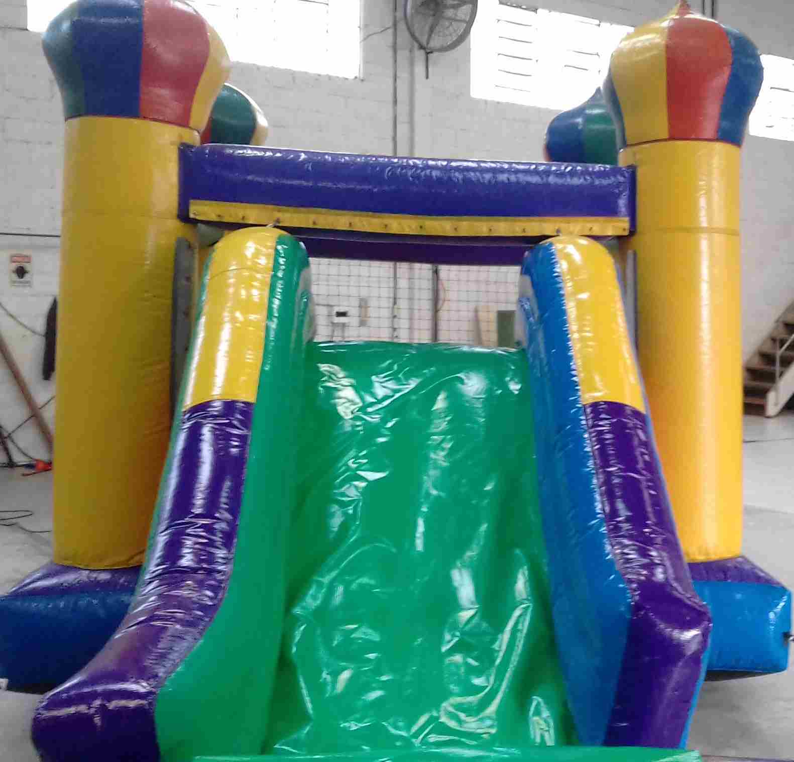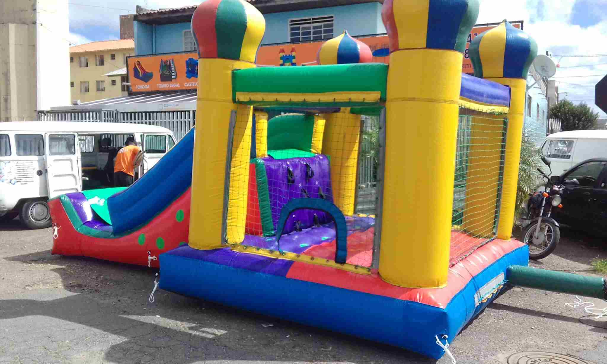 O Castelo com Mini Tobogã é um brinquedo inflável multi-atividade que faz sucesso total nos eventos infantis. Ele proporciona muita interação pelo fato de ser 3 em 1: Escalada, tobogã e pula-pula. Desenvolvido para brincar com segurança, ele possui rede de proteção laterais , quatro torres, entrada pelo castelo pula pula e saída pelo tobogã, acompanha sistema de ancoragem para maior segurança. Ideal para crianças na faixa etária de 2 a 10 anos. Pode ser usado tanto em lugares fechados como abertos. . As crianças adoram! Reserve agora mesmo o seu e faça sucesso com a garotada.