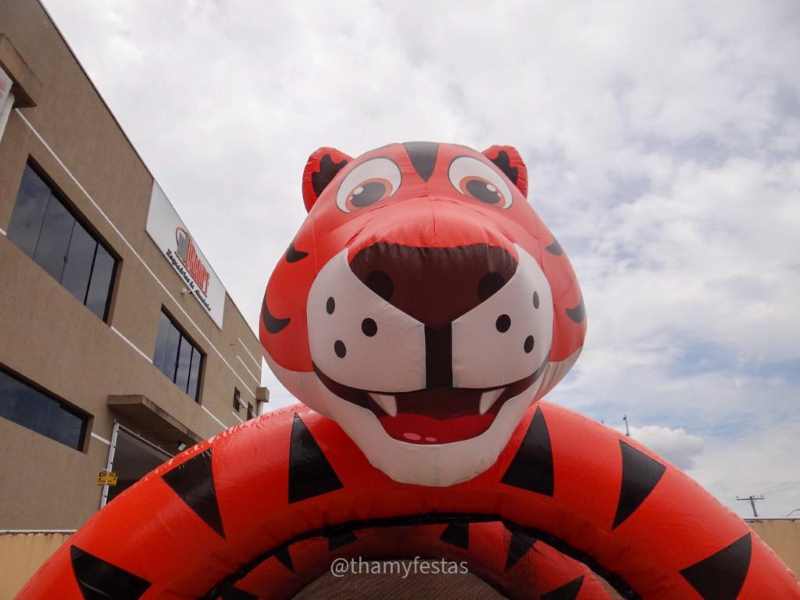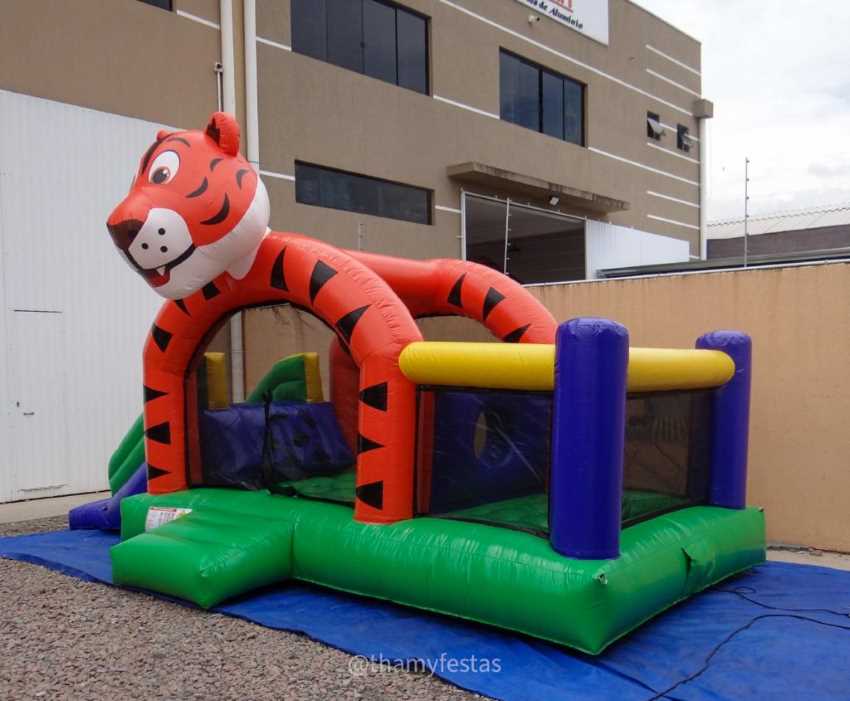 Uma antiga lenda chinesa conta que cada listra que um tigre carrega, representa um obstáculo superado. O Combo 3 em 1 Tigre da Thamy Festas também carrega grandes desafios, pois ao entra no Tigre as crianças vão explorar um mundo de diversão equipado com Pula-pula, Piscina de bolinhas, Parede Vazada e uma escalada com escorrega; Seu incrível design em 3D, irradia alegria e o torna ainda mais convidativo e simpático na hora do brincar. Muito versátil, é sucesso em qualquer tipo de evento.