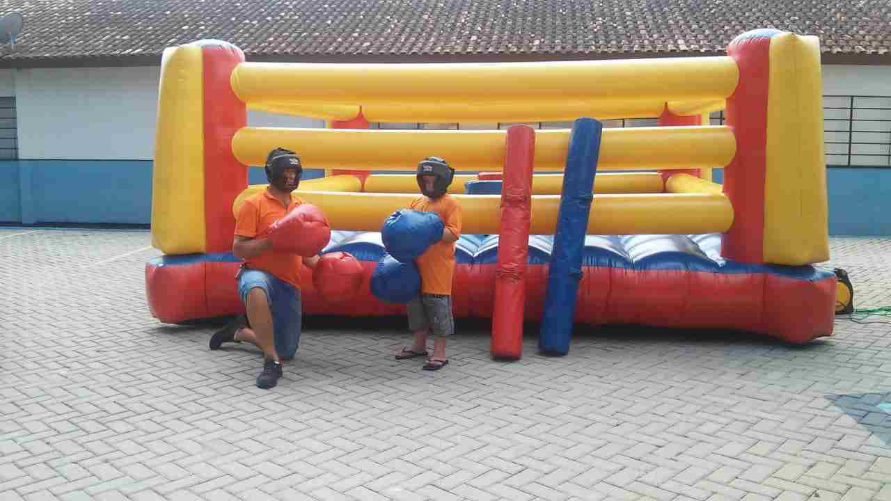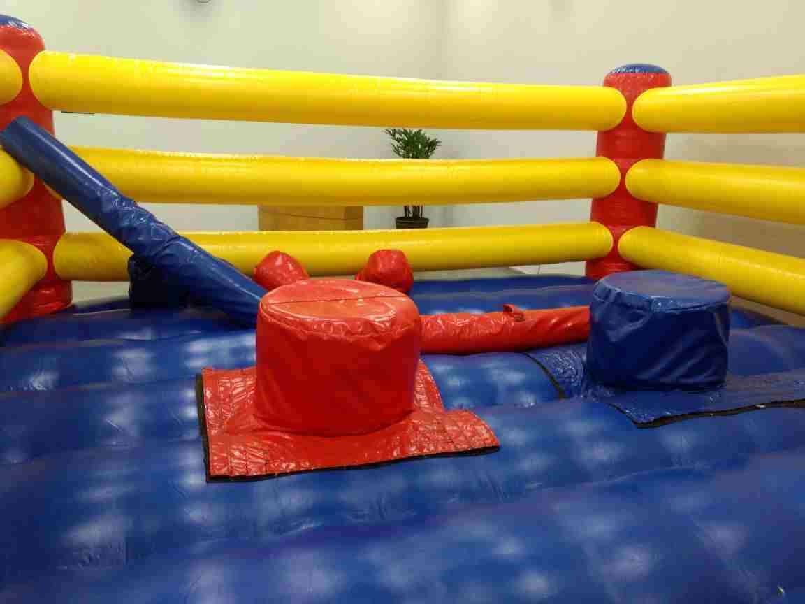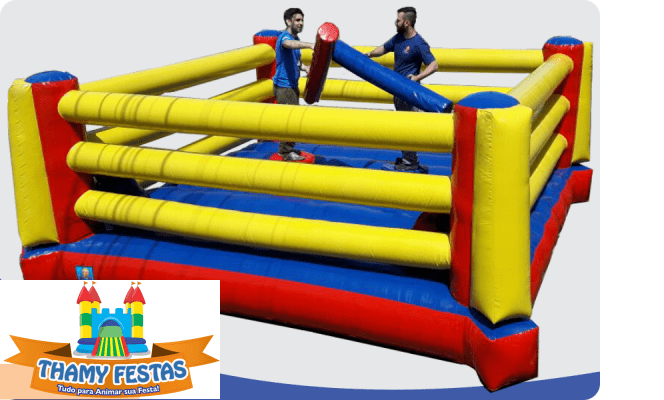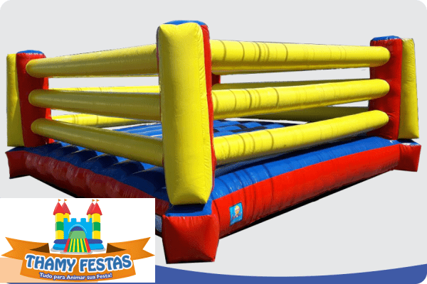 O Ringue inflável é um brinquedo bem resistente e seguro, com paredes laterais de segurança, colchão inflável, tambores e cotonetes espumados e forrados com lona macia, totalmente seguro. Acompanha sistema de ancoragem para maior segurança. Ideal para crianças na faixa etária a partir de 8 anos. Pode ser usado tanto em lugares fechados como abertos.